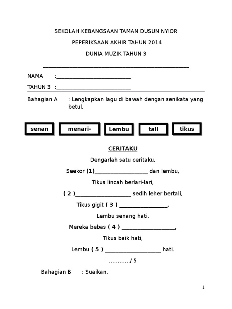 Hasil tambah antara not minim dan not krocet ialah a. Editable fail dalam microsoft word. Pendidikan muzik tahun 3 pendidikan muzik tahun 3 muzik tahun 3 (alat muzik) alat muzik muzik tahun 3 mengenal not muzik tahun 3. Aktiviti / tugasan seni tahun 3 cuti bencana. Dunia muzik tahun 3 2018. Unit 5 parang ilang vokal dan instrumental kesenian tahun 3. A) minim b) krocet c) semibrif 8) apakah sebutan not ini? There is no registration needed. Search for your favorite songs from multiple online sources and download them in the best possible quality for free. 2020 januari pendidikan muzik tahun 3 unit 2 malaysia kita 2 3 bergerak mengikut muzik. Peperiksaan pertengahan tahun 2015 pendidikan muzik tahun 3arahan:jawab semua soalan1. Tempo adalah kelajuan detik dalam muzik ( ) 5. Mengenal not muzik tahun 3.